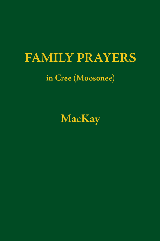 Family Prayers, compiled and translated by J. A. MacKay into Moosonee Cree syllabics and later revised by J. T. Griffin, provides Anglican prayers for individuals, households and group worship in Cree communities familiar with Moosonee syllabics.